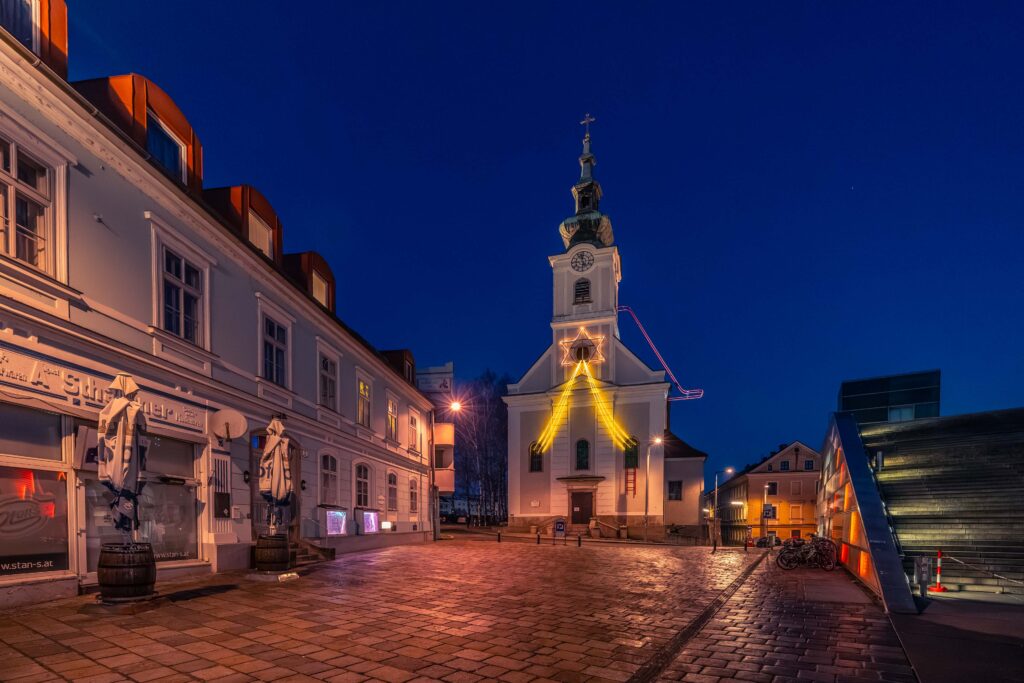 W grudniu Hauptplatz zamienia się w bajkową scenerię. To tutaj odbywa się główny Jarmark Bożonarodzeniowy. Pośrodku stoi ogromna choinka, wokół której rozstawione są stragany z rękodziełem. To idealne miejsce na wieczorny relaks.