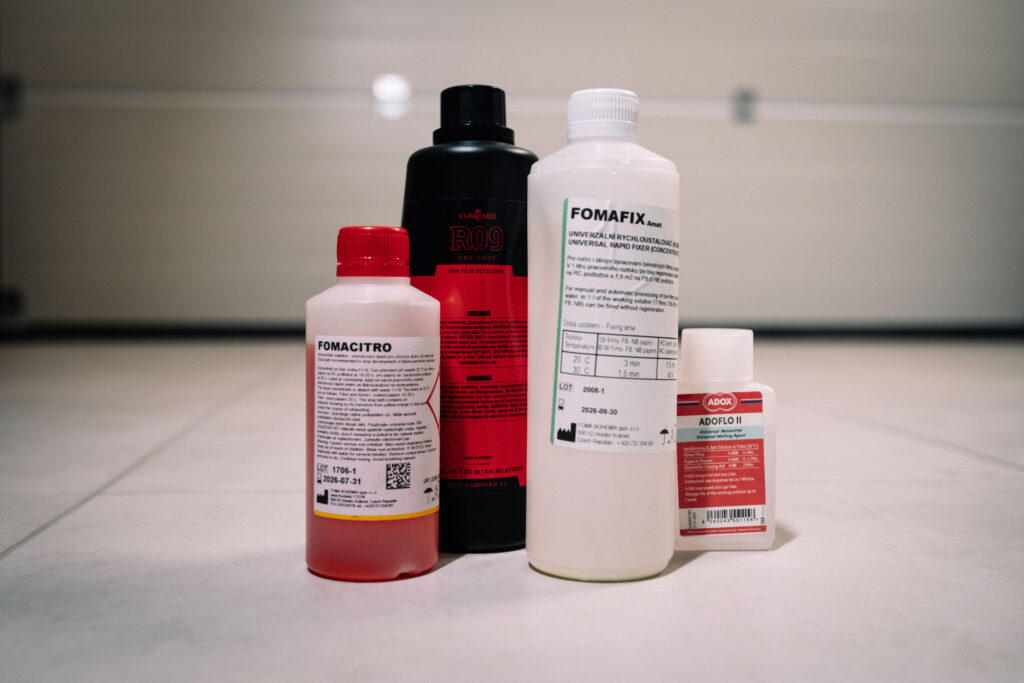 - COMPARD R09 (AGFA formuła Rodinal) 500ml – wywoływacz w płynie typu „one shot”. Czyli taki, który służy raz i jest do wyrzucenia. Stwierdziłem, że taki na początek będzie najłatwiejszy do zastosowania