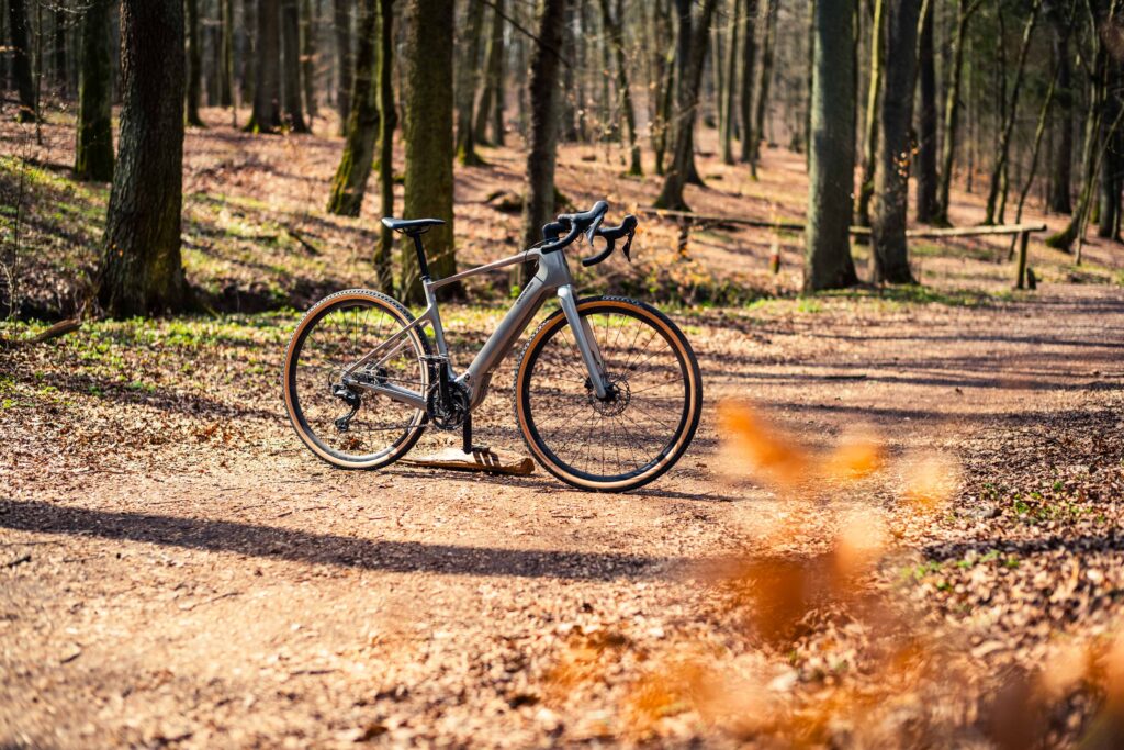 Za zmianę przełożeń odpowiada mechaniczny osprzęt Shimano – klamkomanetki i hamulce z grupy GRX 800 oraz przerzutka GRX 820. To klasyka gatunku: solidna, sprawdzona i bezawaryjna. Koła na aluminiowych obręczach nie rzucają na kolana, ale obuto je w opony Vittoria Terreno Dry (40 mm), które dobrze radzą sobie na szutrach.